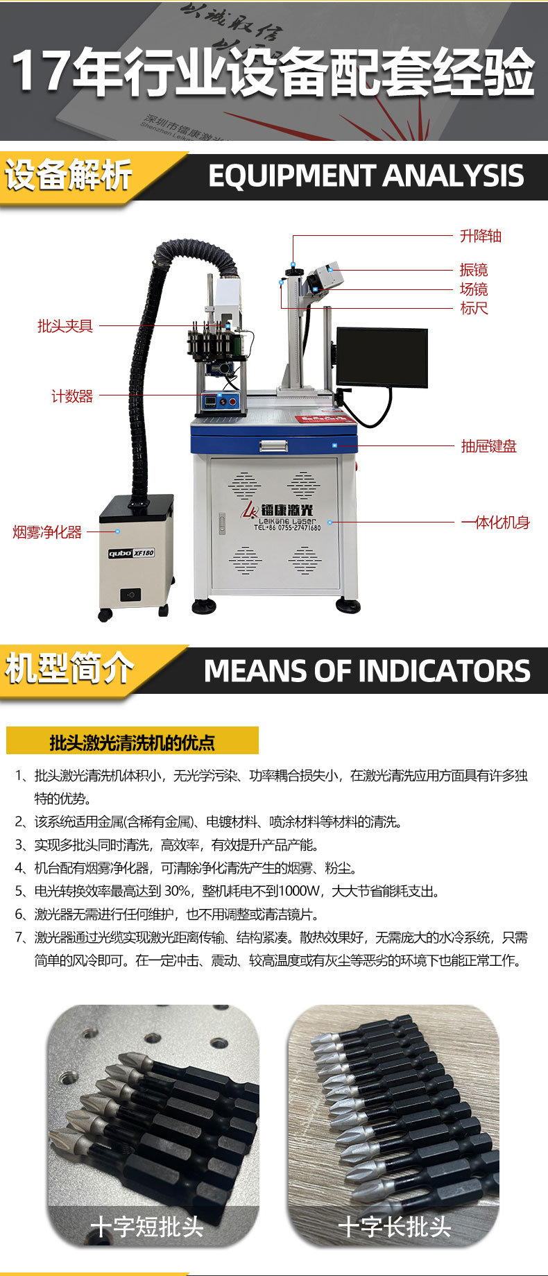 7、激光器通過光纜實現激光距離傳輸、結構緊湊。散熱效果好,無需龐大的水冷系統,只需簡單的風冷即可。在一定沖擊、震動、較高溫度或有灰塵等惡劣的環境下也能正常工作